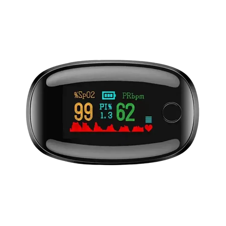 Press the power button once. Within seconds, your SpO₂, pulse rate, and perfusion index will display on the screen—day or night.