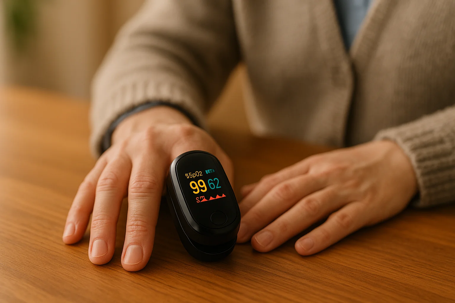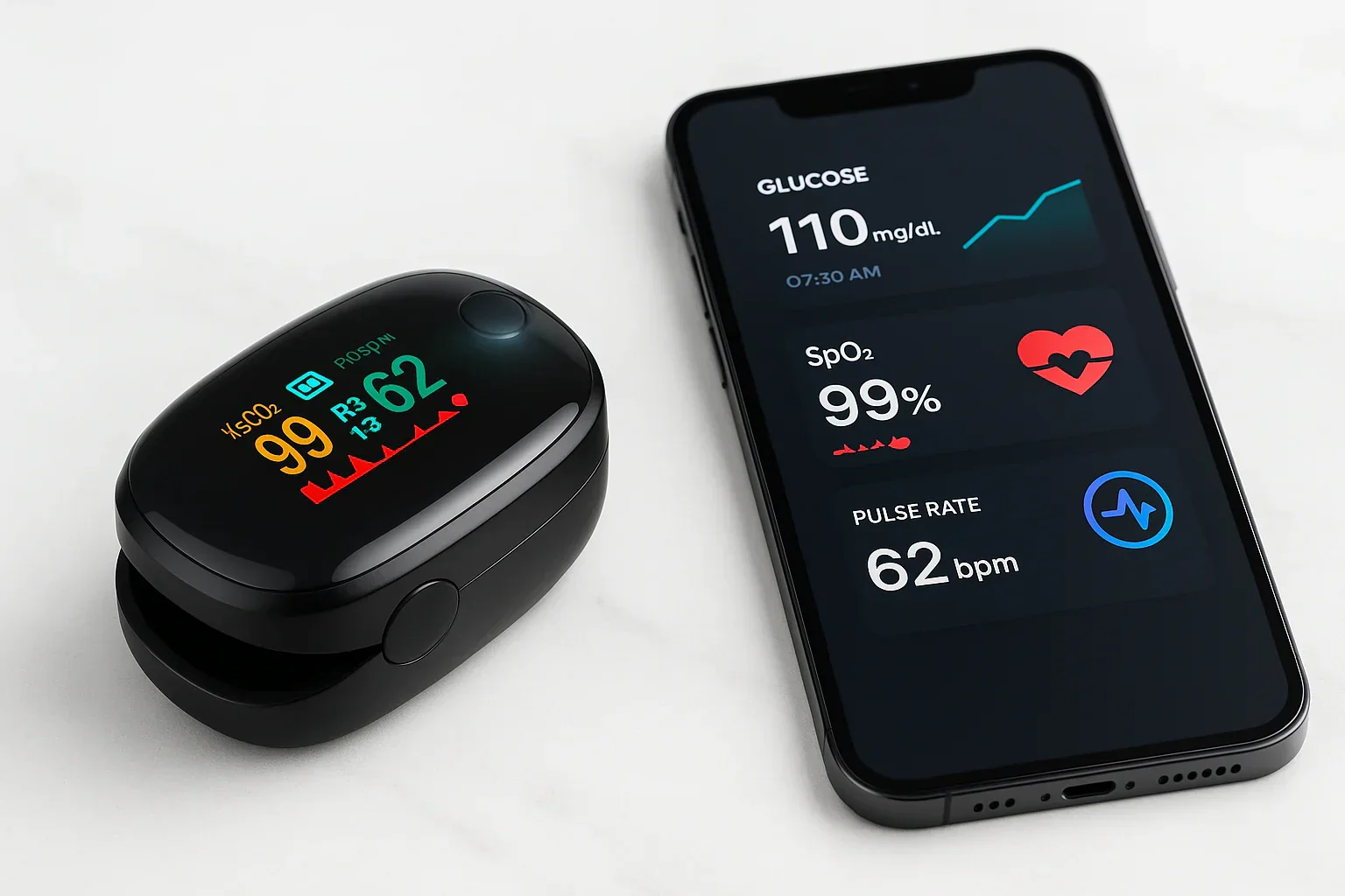 Press the power button once. Within seconds, your SpO₂, pulse rate, and perfusion index will display on the screen—day or night.